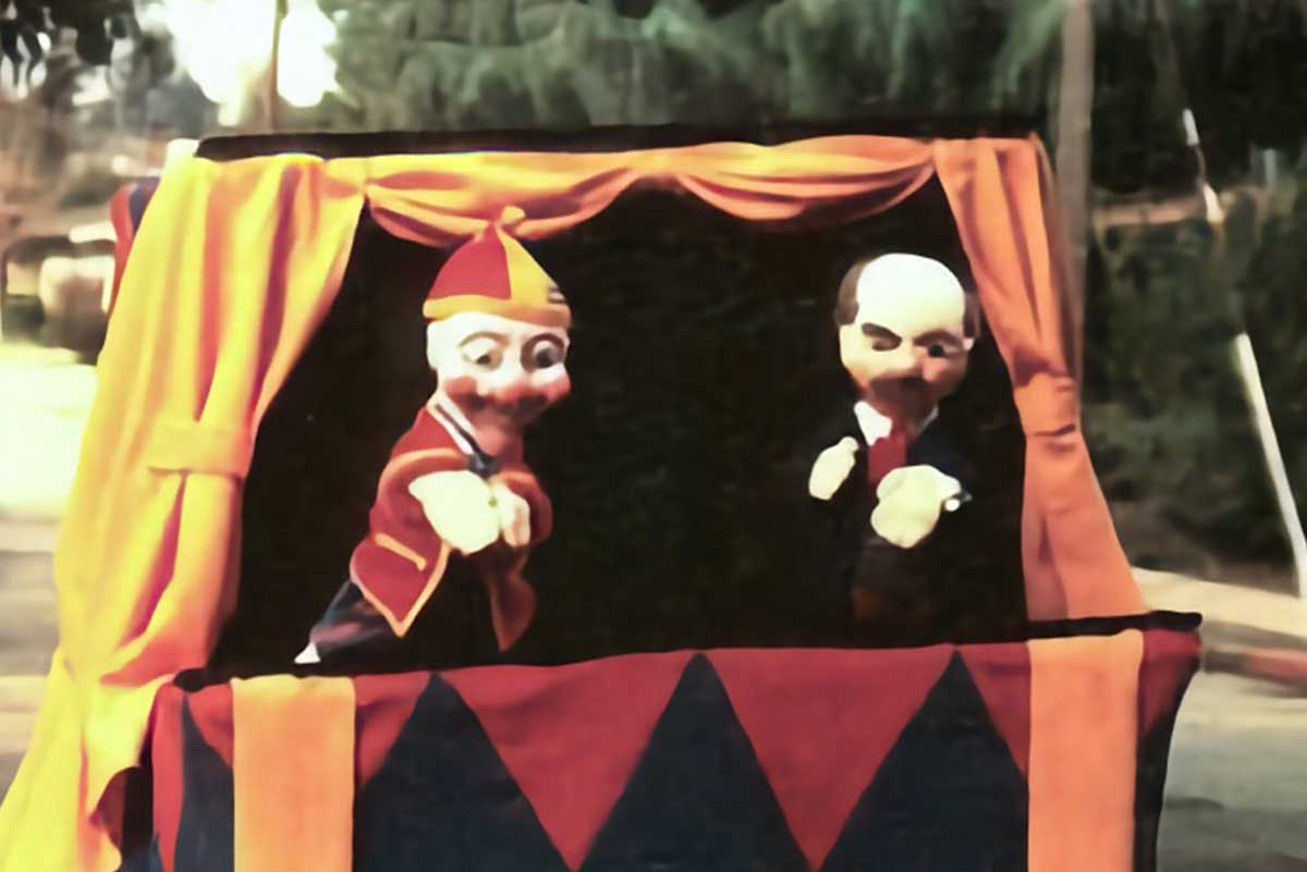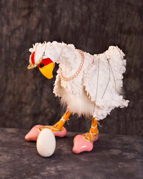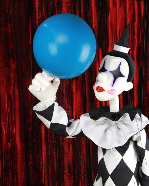 “The Vaudeville Follies” is a marionette variety show presented in the spirit of the old-time music hall. Our puppeteers perform in full view of the audience. Each performance is designed to engage and enthrall: an opera singer, a trapeze artist, Pierrot and his balloon, a trained dog, and a ballet dancing chicken are just a few of the acts you might see.