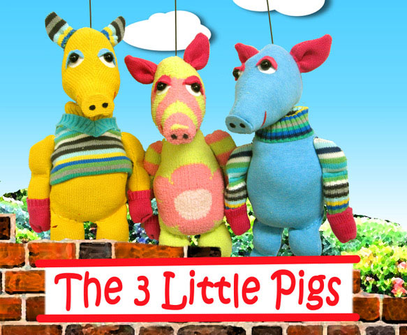 Three pigs set out to seek their fortunes with a bit of house building. Things don't go as planned in this creative retelling of the traditional story; houses collapse, pigs and wolves play together and audience members help the story along with lots of live music, singing, construction and laughter. Presented with traditional Bohemian style marionettes on a tabletop stage.